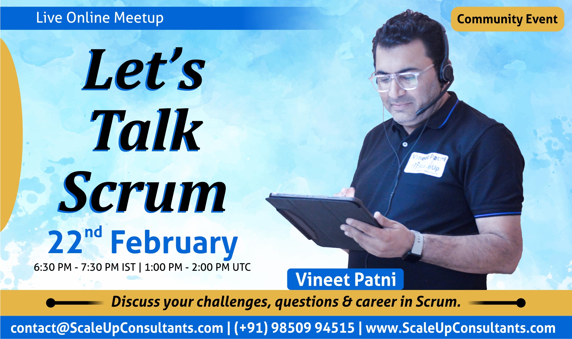 February 22, 2022 @ 6:30 pm - 7:30 pm Let’s Talk Scrum | 22 February 2022 | Vineet Patni Enroll Now https://www.meetup.com/pune-agile-professionals/events/283910003/